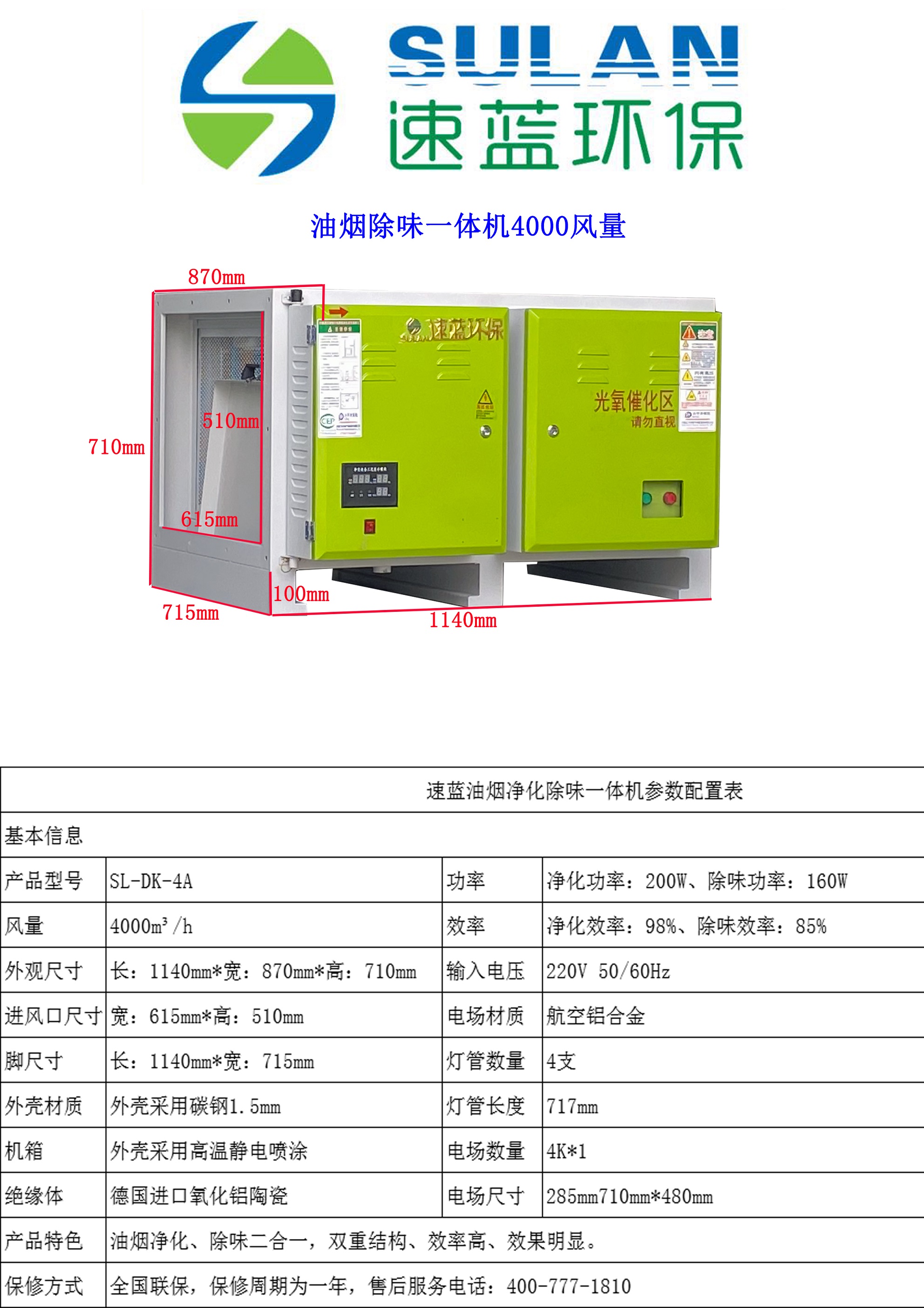 4000風量油煙凈化器一體機類別:餐飲油煙凈化除味一體