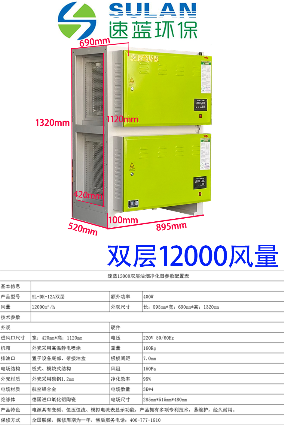 12000風(fēng)量雙層低空油煙凈化器-速藍(lán)環(huán)保類別:低空油煙凈化器