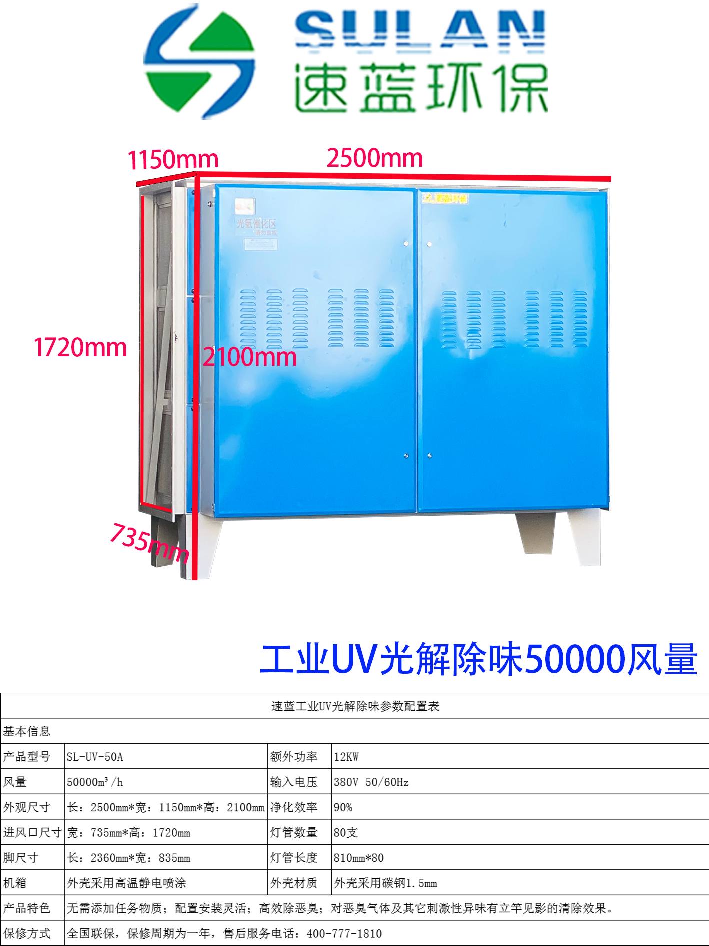50000風(fēng)量UV光解凈化器類別:工業(yè)UV光解凈化器